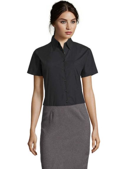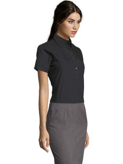 Sol’s Κοντομάνικο Γυναικείο Πουκάμισο Μαύρο Μονόχρωμο 16070-312